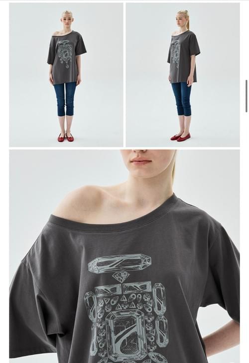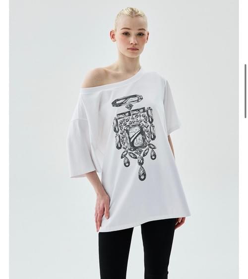 韓國直送 Mardi - OVERSIZED TSHIRT OFF SHOULDER BIJOU